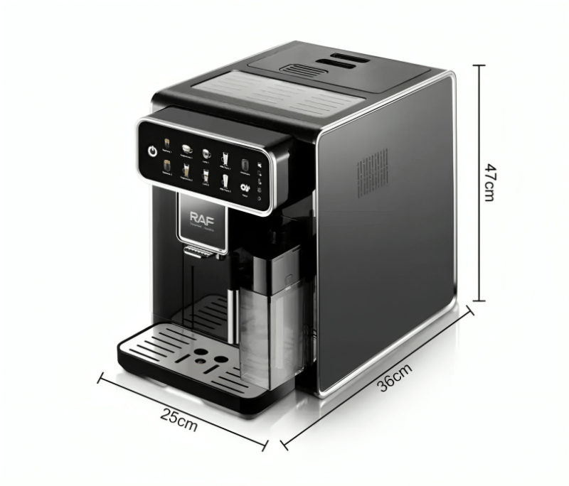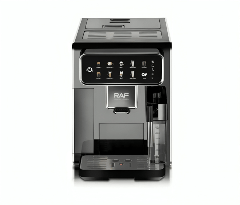 تحضير القهوة بلمسة واحدة عبر شاشة لمس متطورة تعرض عدة خيارات (قهوة سوداء، لاتيه، كابتشينو، اسبريسو، موكا، فرابتشينو، حليب بأنواع مختلفة).